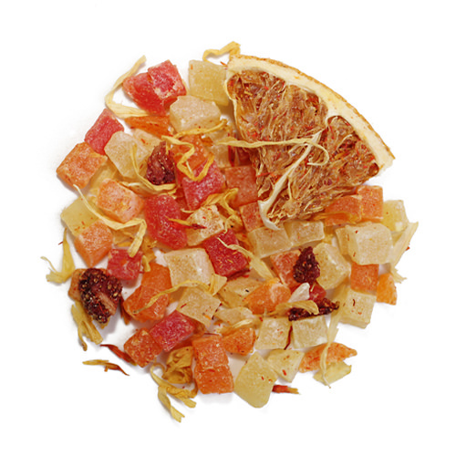 • Состав чая манго, ананас, лепестки календулы, цветки сафлора, апельсин, клубникаи, папайя